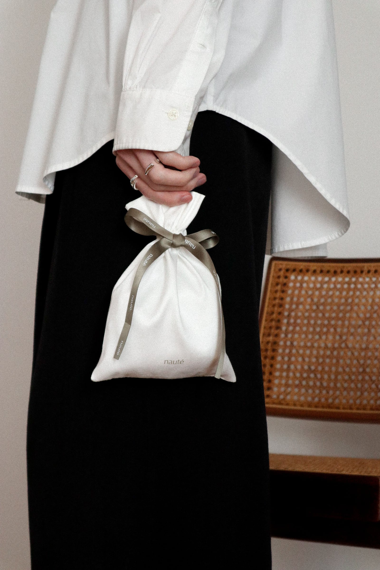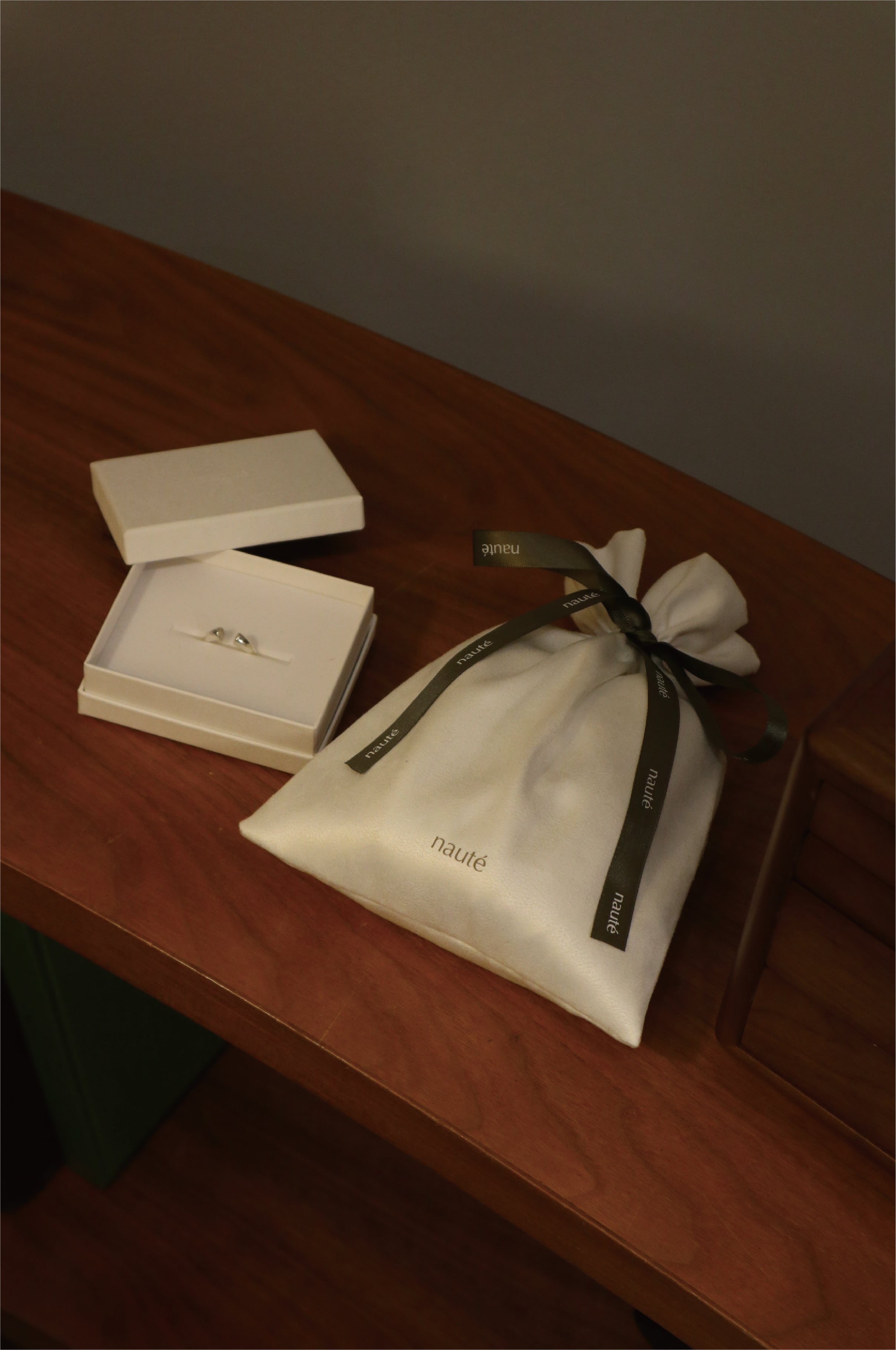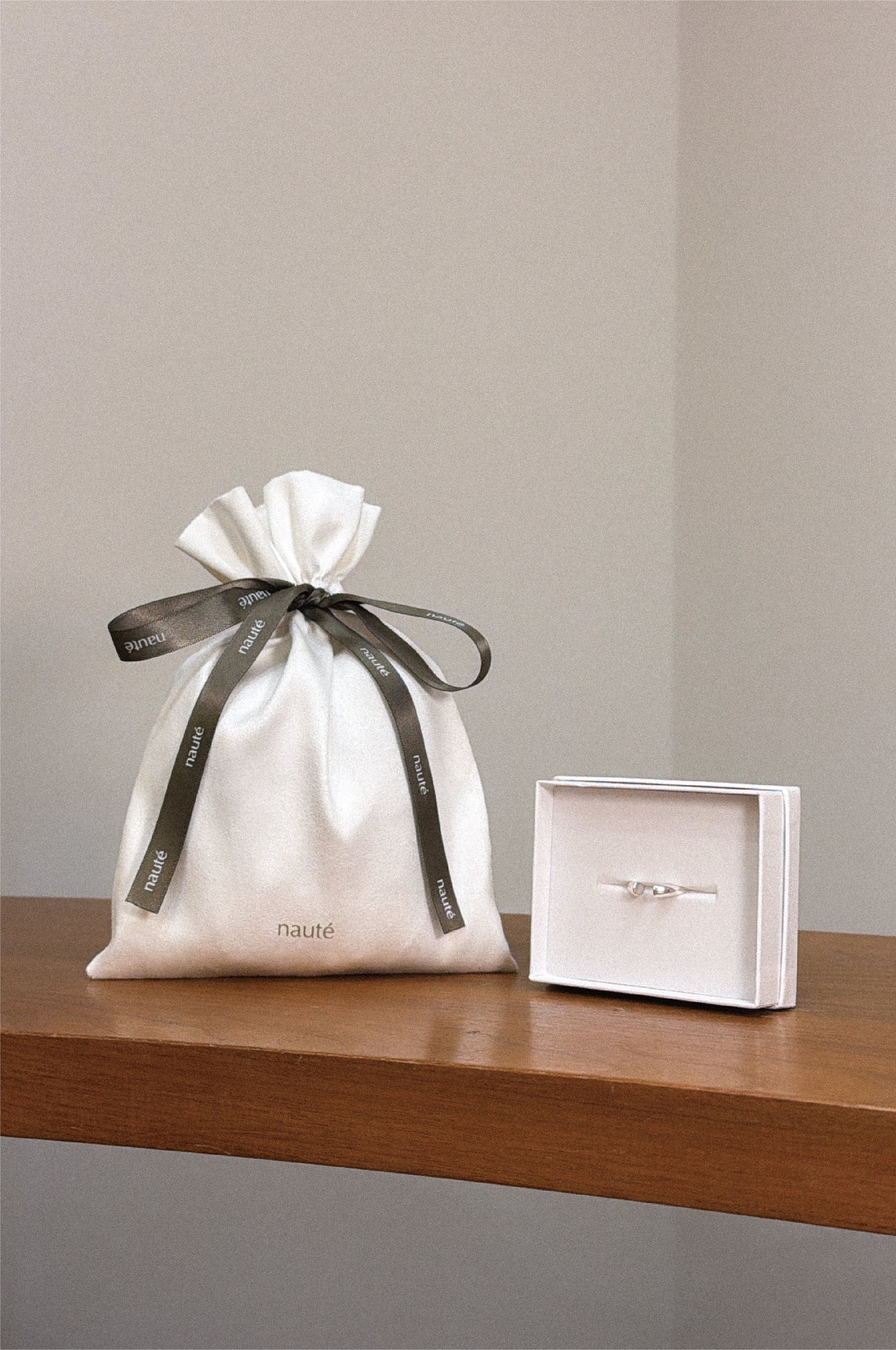 落ち着いた色味と上品な質感は、nautéのアクセサリーと自然に調和し、手にした瞬間の特別感をより一層高めてくれます。