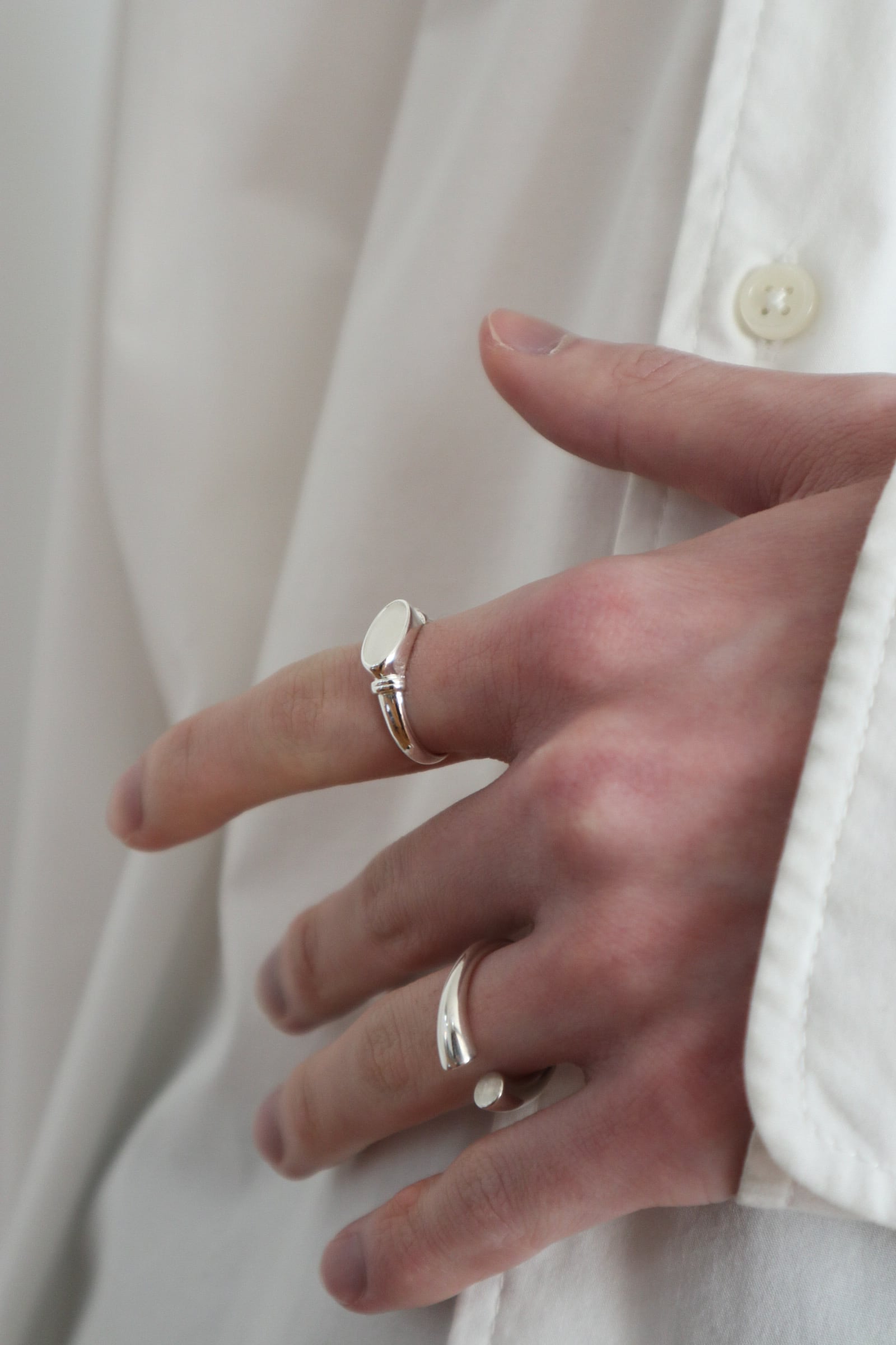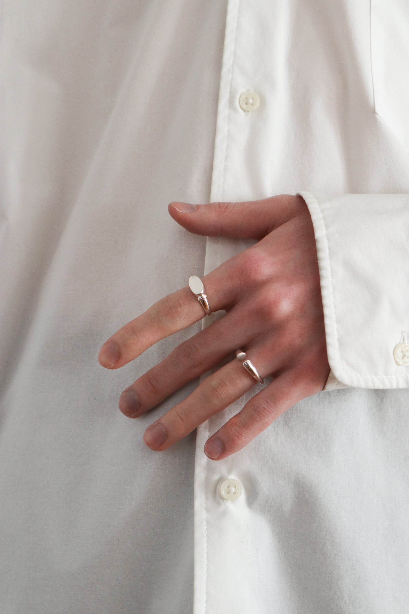 カルムホワイトは天然石ネフライトジェイドを使用し、穏やかで内に滲む光をそのまま指先に映すリング。