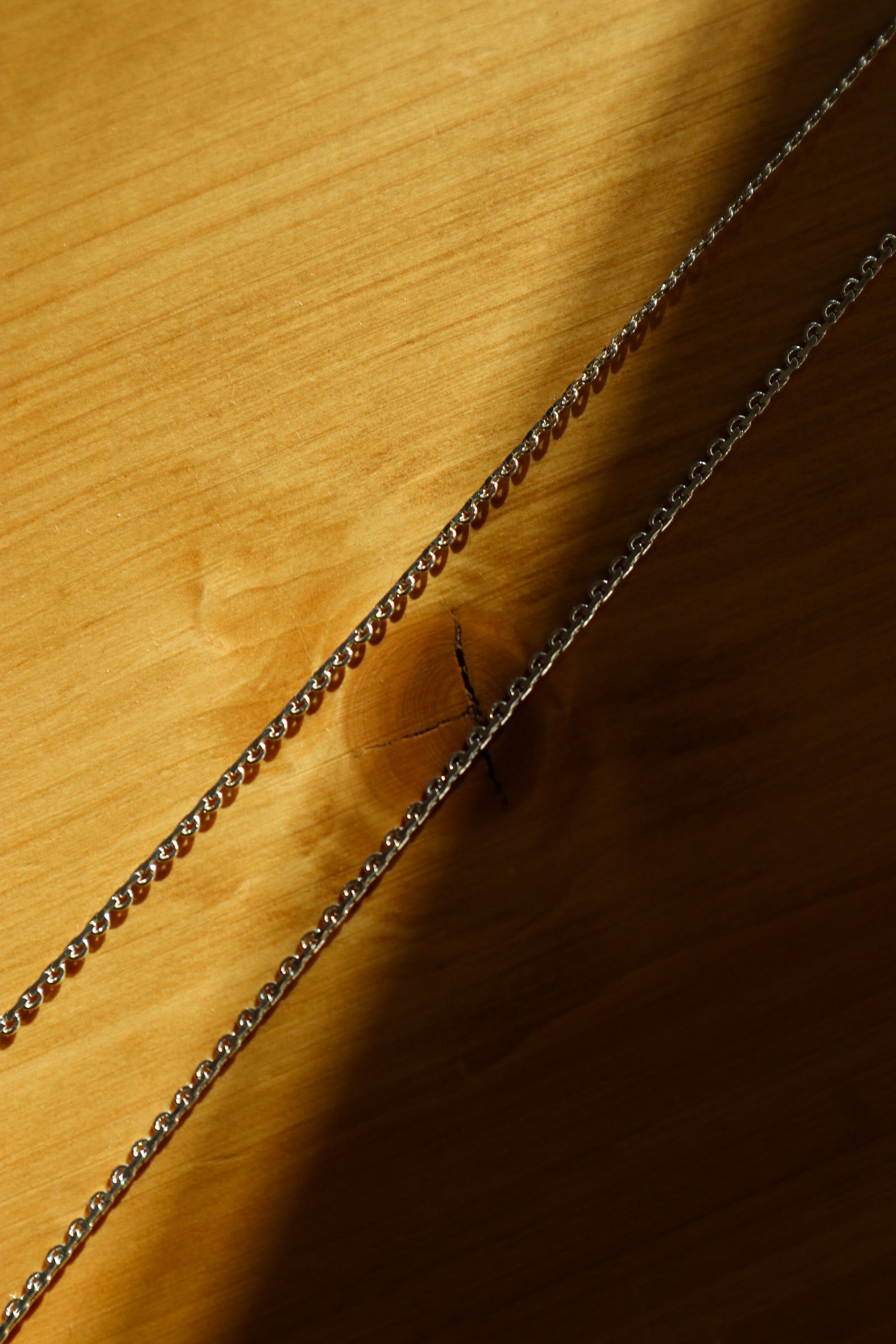 華奢で軽やかなチェーンが、動くたびにやわらかく光を反射します。
